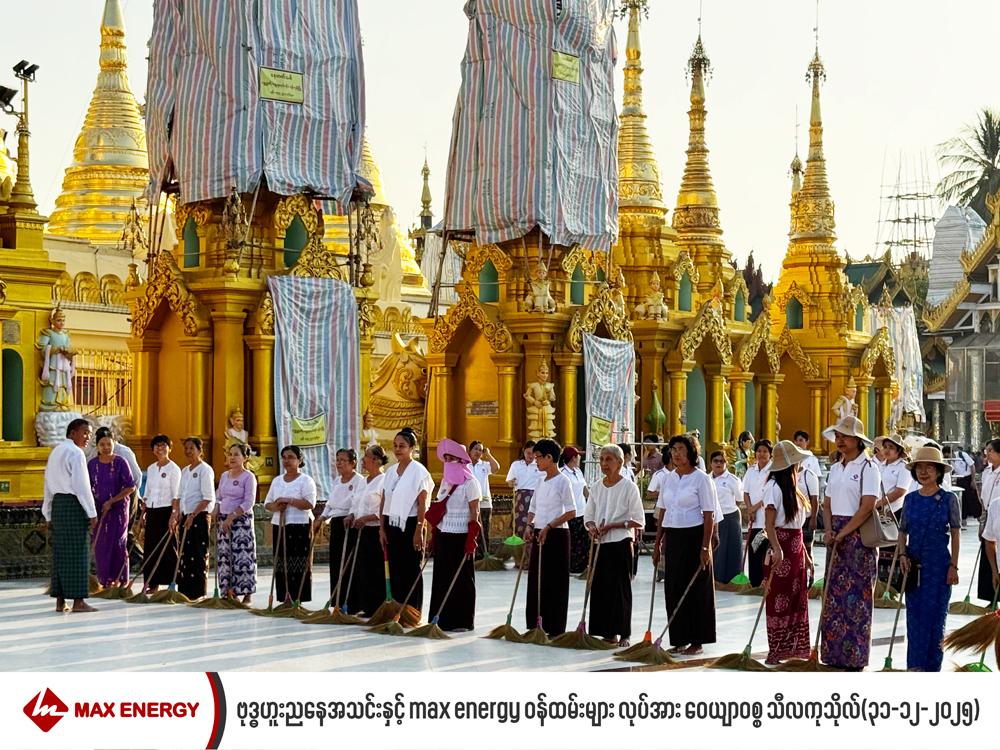 31 Dec Max Energy မိသားစုမှ ရွှေတိဂုံစေတီတော်မြတ်ကြီး၌ စုပေါင်းသန့်ရှင်းရေး ကုသိုလ်ယူ